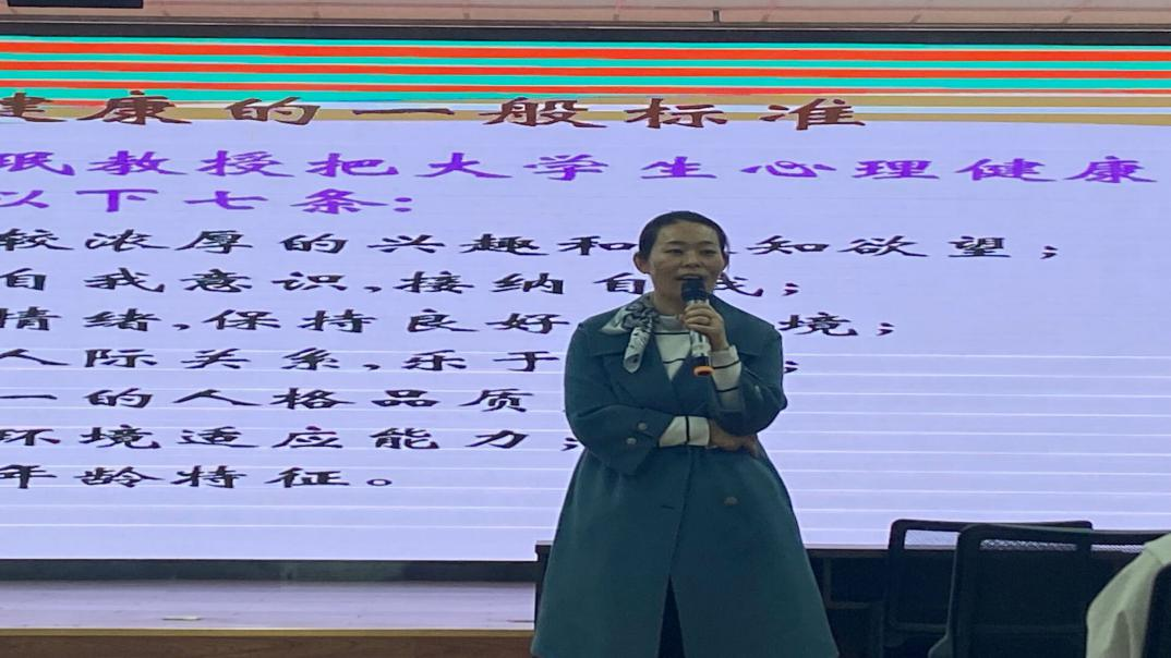 紧接着,陈慧老师详细耐心地讲解了“大学生心理健康一般标准”,许多同学只知其重要性,而不知其详情。七条准则,陈慧老师用真实动人的事例一一向我们展示了心理健康鲜为人知的一面。譬如:“能对学习保持较浓厚的兴趣和求知欲,能保持正确的自我意识,接纳自我”,这些准则都与我们息息相关,因此在平日学习生活中,同学们可以随时用准则衡量一下自己是否处于心理“健康状态”。
