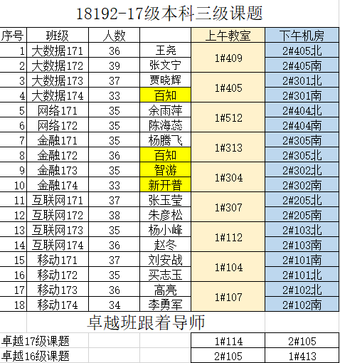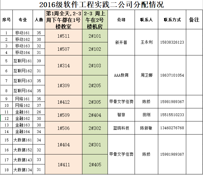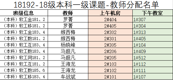 当前位置: 首页 >> 学院公告 >> 正文 2018-2019学年第二学期前三周实践环节安排 发布日期:2019-02-22 作者: 点击: 各位老师、同学: 2018-2019学年第二学期前三周实践环节安排如下表,安排半天机房,半天教室。教室作为实践课题的辅助场所已经安装电源插头,方便同学们携带电脑充电。如要使用插座请各班班委每次使用前打开教室后墙上的3个电源开关;每次使用完毕将教室后方全部电源关闭,做到人走电断!由于专科,第二三周18级还有课程,如遇教室冲突,还请师生给上课班级让出教室。 上一条:2018级卓越软件工程师班级遴选第一阶段排名公示 下一条:关于2019年全国大学生英语竞赛报名的通知