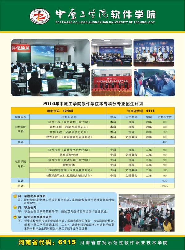 答:2014年我院招收的本科专业为上图四个专业。文理兼收的专业只有软件工程(互联网营销与管理方向)。