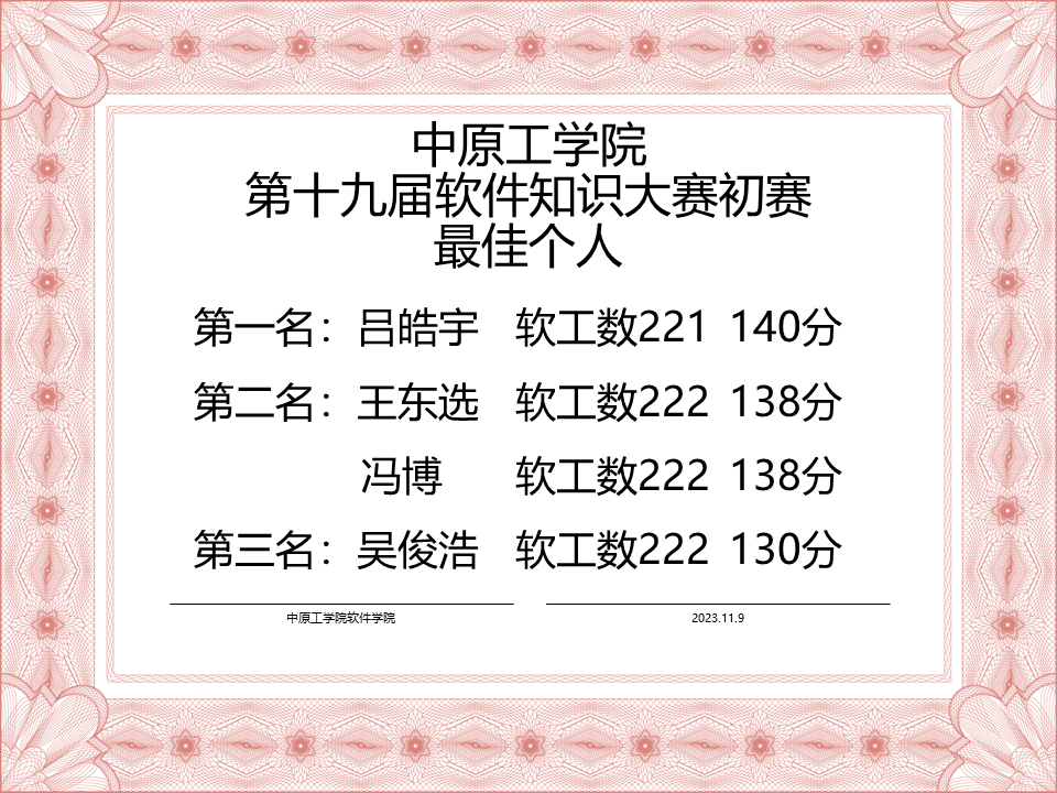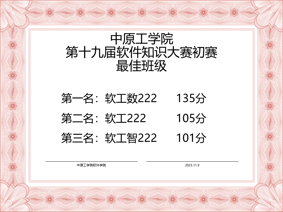 2023年11月9日,williamhill英国中文在学生会学科部的组织下,顺利完成第十九届软件知识大赛的比赛。现将初赛结果公布如下: