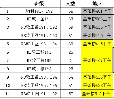 由于2020级还要上课到16周,中间或有课题教室有课的情况,请各班提前在学校的“校课表查询”了解情况告知实践指导老师。